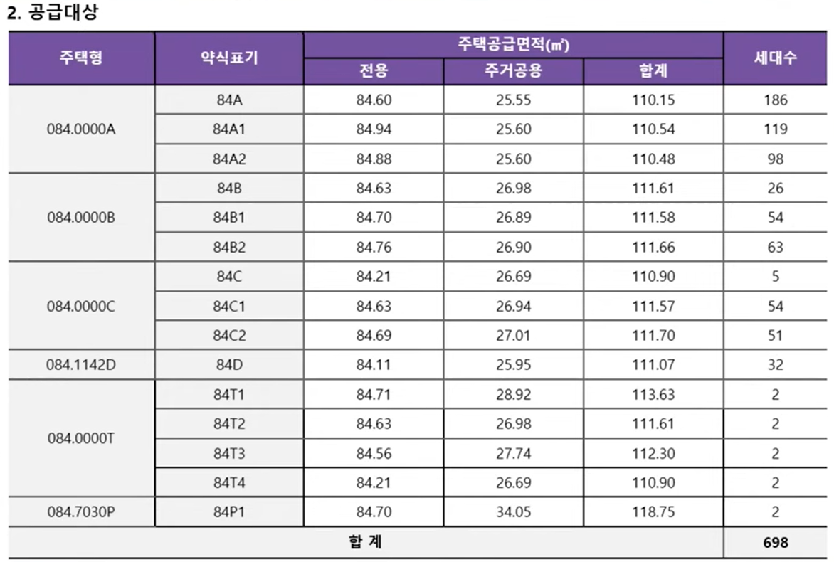 총 공급 물량은 698세대로