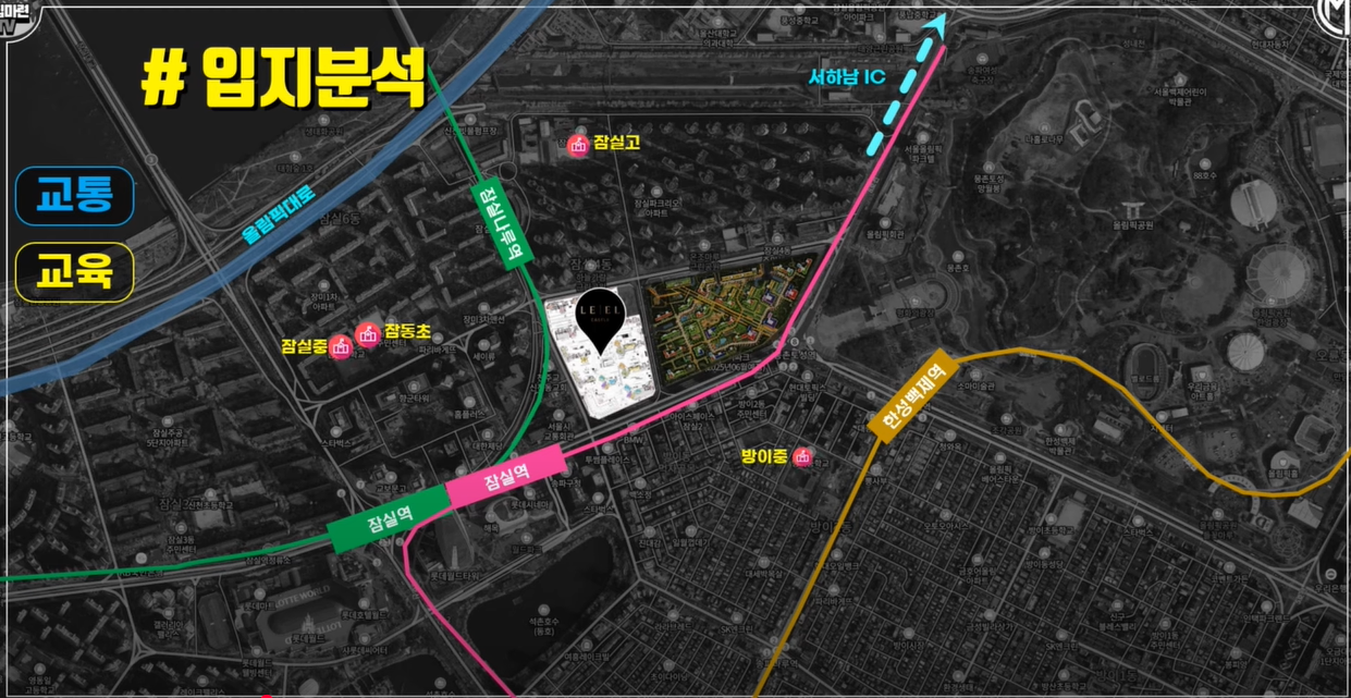 A: 서울 송파구 신천동 17-6에 위치하며, 잠실역과 가깝고 올림픽대로 접근이 용이합니다.